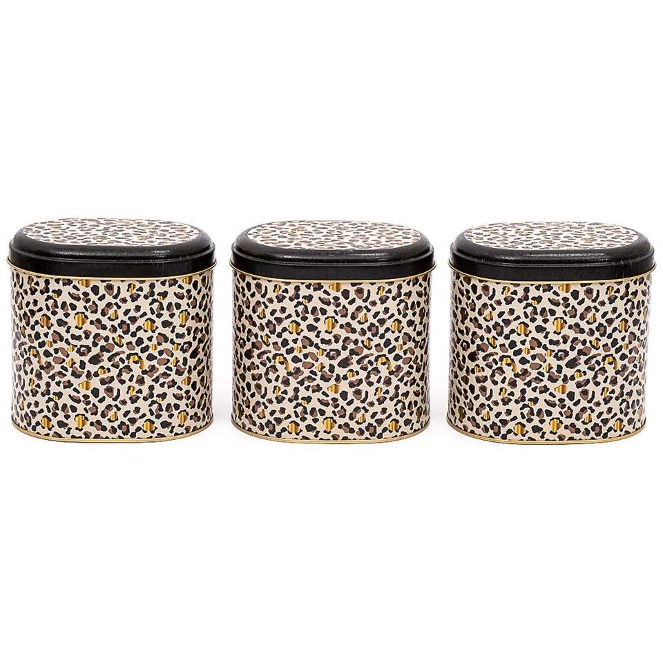 ชุดกล่องเก็บโลหะรูปไข่ขนาด140x120x130มม. 1.4L (ชุด3ชิ้น) ลายเสือดาวสีทองดีไซน์ LEO