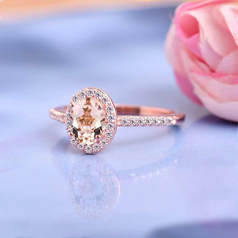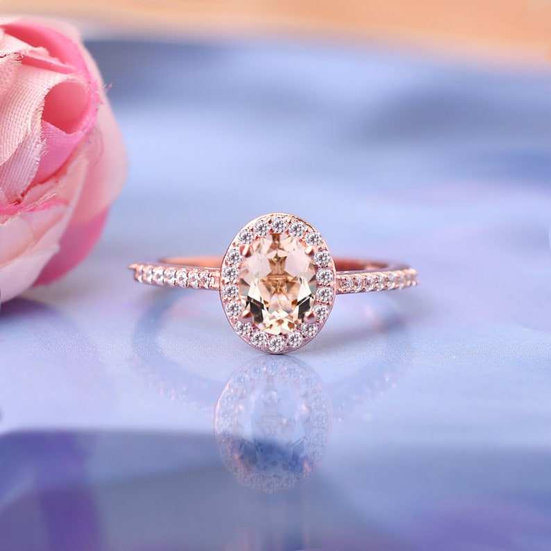 แหวนหมั้นมอร์กาไนต์ทรงรีแหวนแต่งงานแหวนสัญญาแต่งงานแหวนพลอยสีชมพูสำหรับเป็นของขวัญวันเกิดสำหรับเครื่องประดับที่สง่างามของเธอ