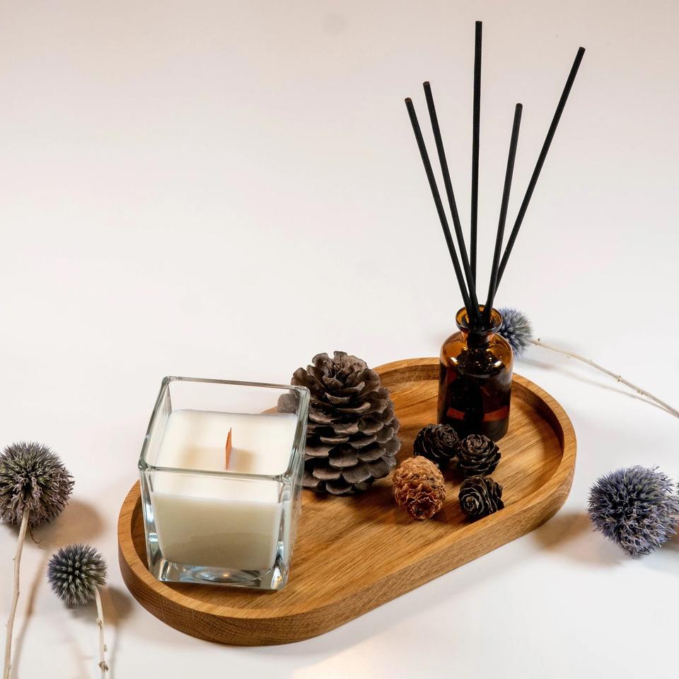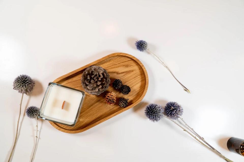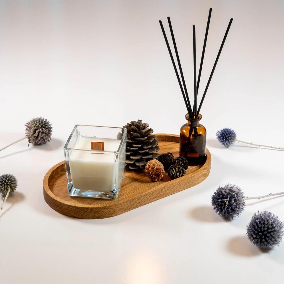 ถาดไม้โอ๊คทรงรี ถาดใส่เครื่องประดับและกาแฟสไตล์โมเดิร์น ถาดไม้ทำมือ ถาดอเนกประสงค์ไม้
