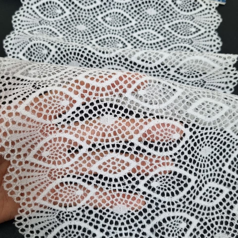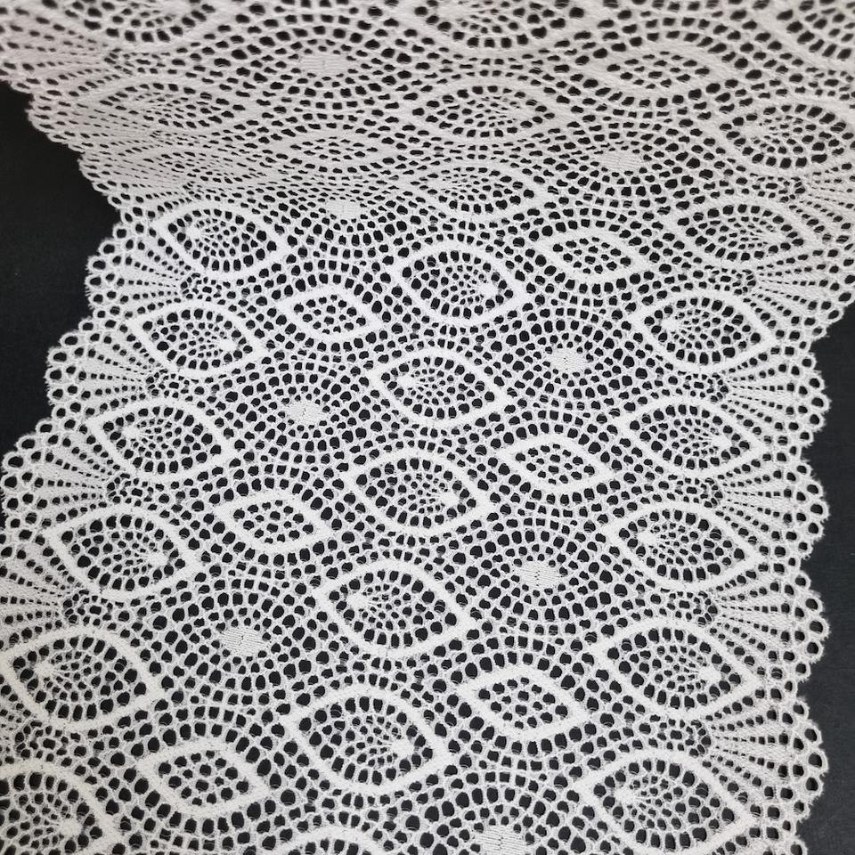 ผ้าลูกไม้สแปนเด็กซ์/ไนลอนลายวงรีแบบสแกลลอป ยืดได้ น้ำหนักเบา กว้าง 20 ซม. สำหรับชุดแต่งงาน เครื่องแต่งกาย และงานตกแต่ง