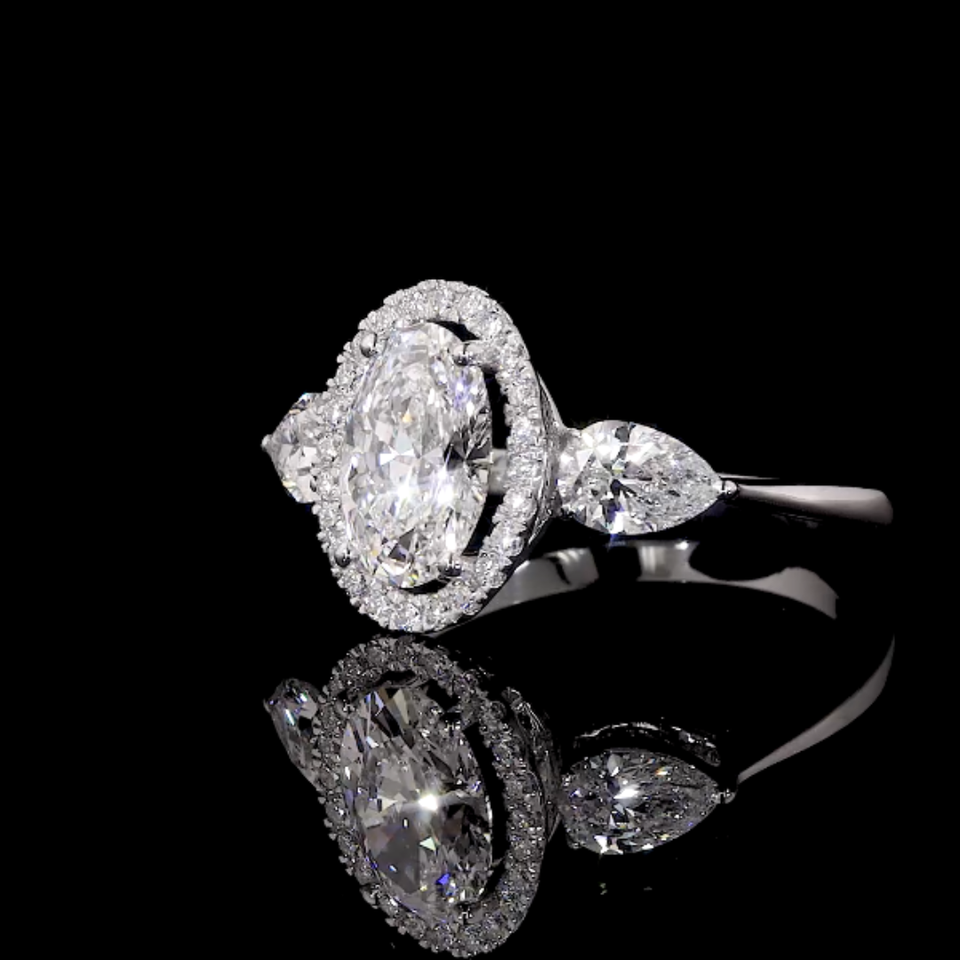 แหวนเพชรรูปลูกแพร์และทรงกลม3รูป2.576CT VVS2สี D 18K IGI ทองคำขาวขนาด7รับรองโดยเรา