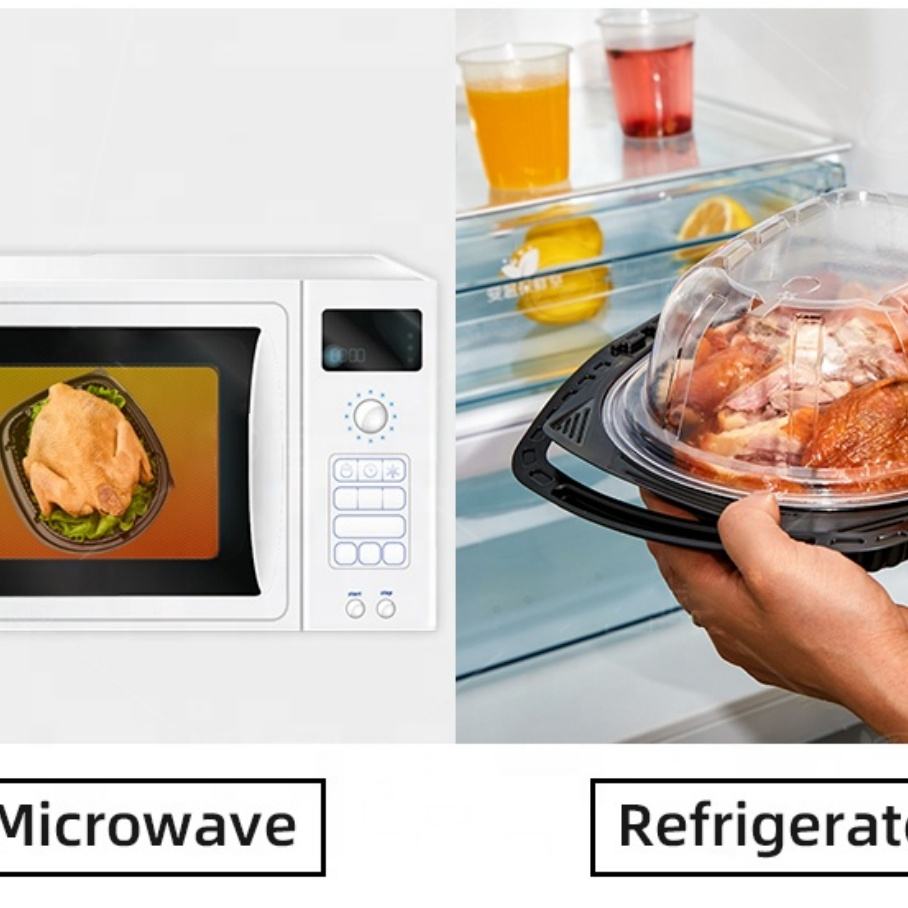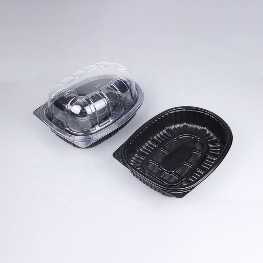 กล่องใส่เนื้อไก่ย่างรูปไข่ แบบใช้แล้วทิ้ง สำหรับใส่อาหารกลับบ้าน ทำจากพลาสติก PP ใช้กับไมโครเวฟได้ พร้อมฝาปิดกันฝ้า
