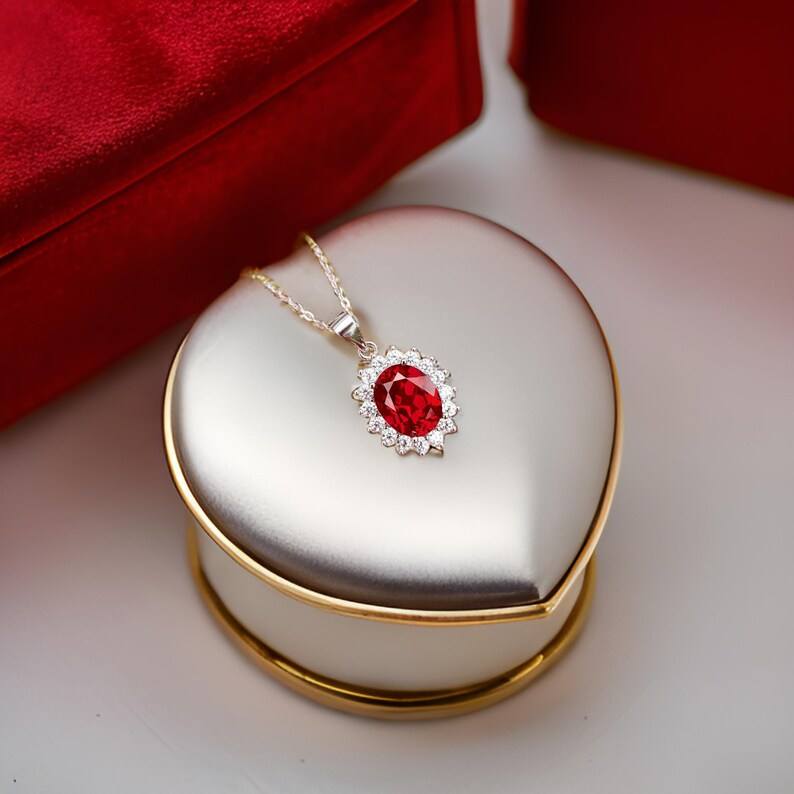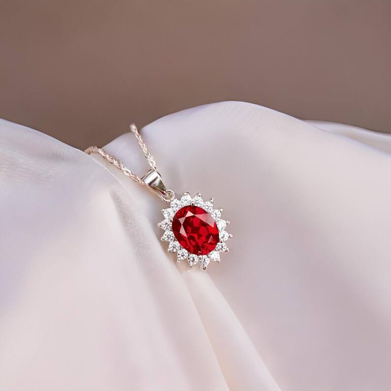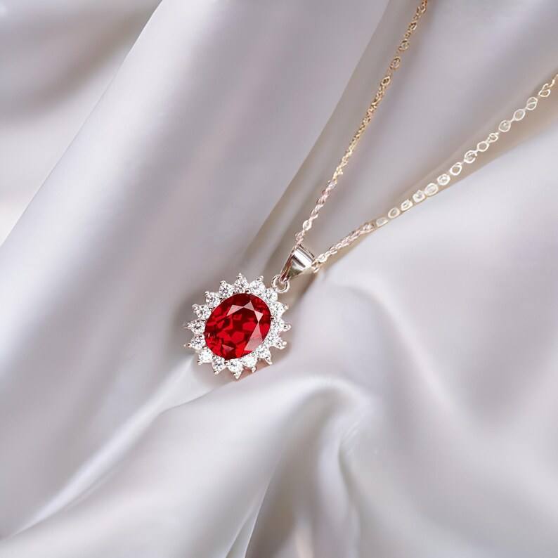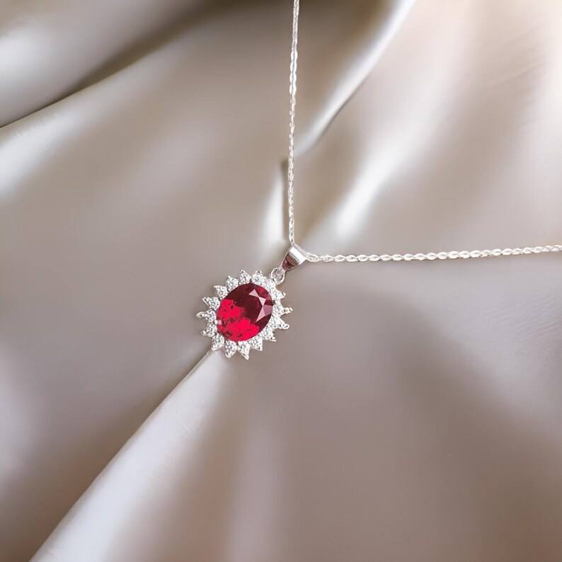 จี้รูปไข่ประดับทับทิมเงินแท้ทรงโอเวลล์ ประดับเพชร CZ รอบเพชร งานแฮนด์เมด เครื่องประดับอัญมณี สำหรับผู้หญิงและเด็ก ขายส่ง