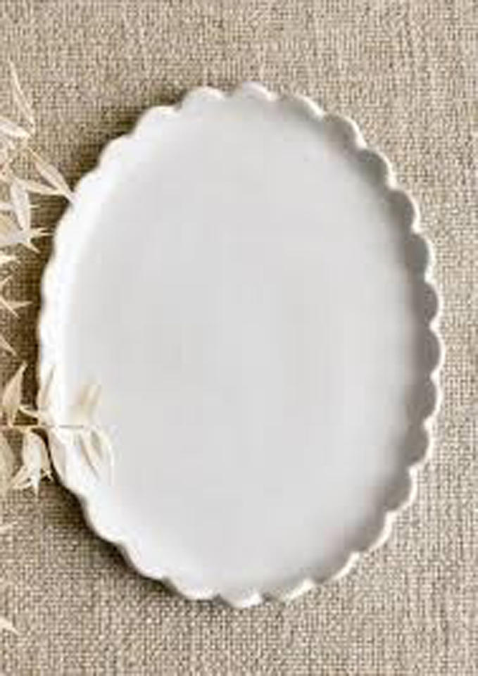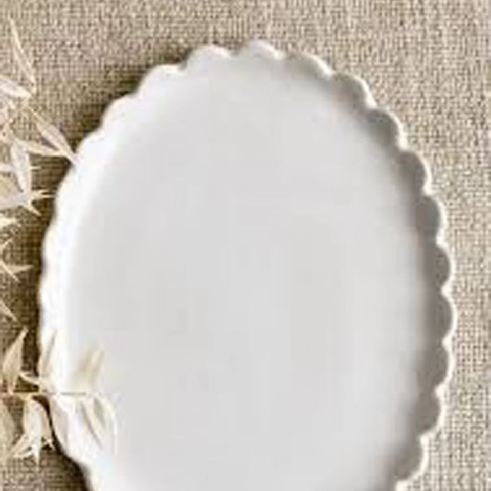 ถาดเซรามิกทรงรีสำหรับบ้านโรงแรมและร้านอาหารเครื่องครัวถาดเสิร์ฟผลไม้ช็อคโกแลตถาดเซรามิกสีขาวหรูหรา