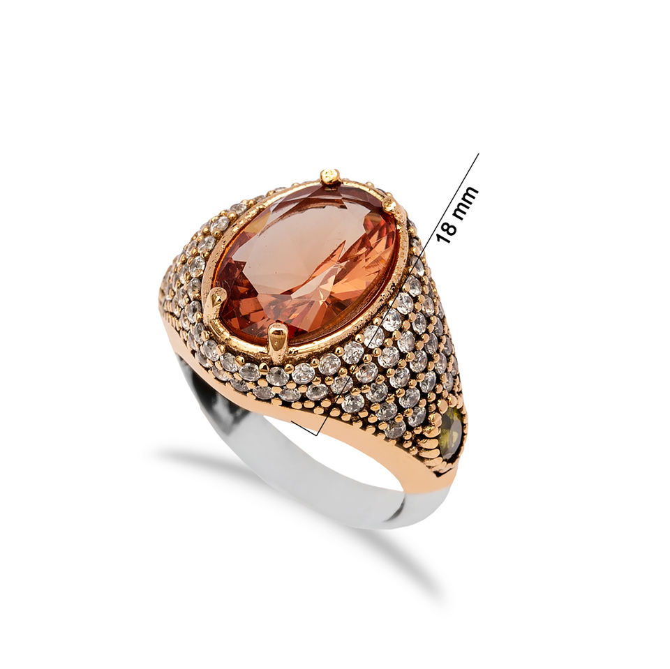 รูปไข่หินซิทริน Unisex แท้แหวนตุรกีแฮนด์เมดขายส่ง925เครื่องประดับเงินสเตอร์ลิง