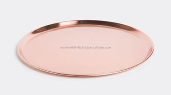 Oval Shape Copper Plated Food Serving Tray with Hammered Work and Handle for Home and Kitchen Ideal Copper Serving Tray in India