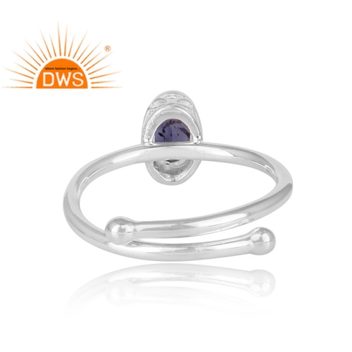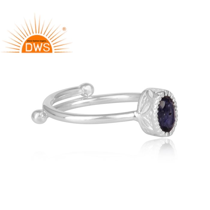 แหวนมงกุฎแฟนซีสำหรับผู้หญิงผู้ผลิตเครื่องประดับธรรมชาติ Iolite พลอยดีแหวนเงินผู้จัดจำหน่ายเครื่องประดับ