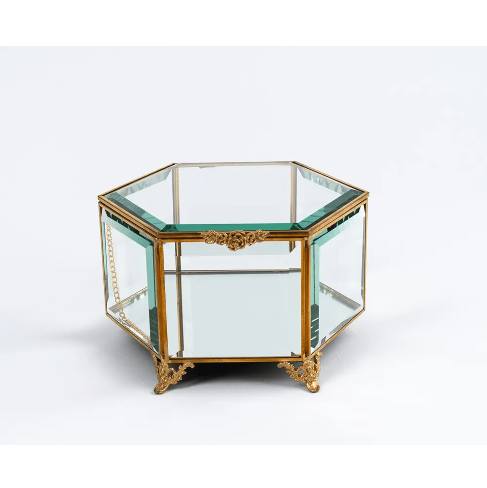 กล่องแก้วทรงรีสำหรับตกแต่งเครื่องประดับทองเหลือง/แก้วกล่องจัดเก็บเครื่องประดับสำหรับแหวนต่างหูสร้อยคอกล่องเครื่องประดับ