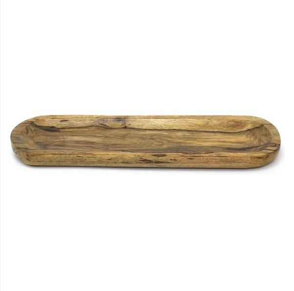 จานเสิร์ฟไม้มะม่วงทรงวงรีถาดเสิร์ฟอาหารปลอดภัยทำจากไม้สำหรับขนมขบเคี้ยว