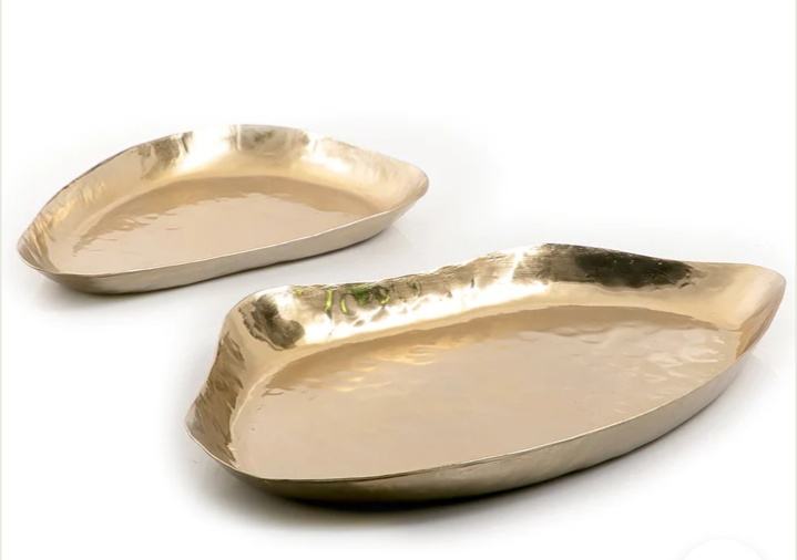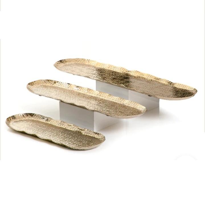 ถาดเสิร์ฟอาหารเคลือบทองโลหะทรงรีถาดเสิร์ฟอาหารสำหรับงานเลี้ยงแต่งงานตกแต่งโต๊ะถาดเสิร์ฟอาหาร