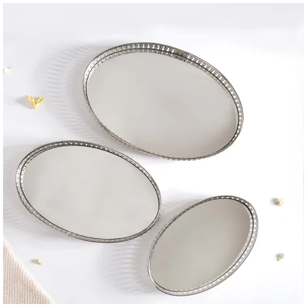 ถาดเสิร์ฟโลหะทรงวงรีถาดช็อคโกแลตดีไซน์เนอร์แฮนด์เมดคุณภาพระดับพรีเมียม