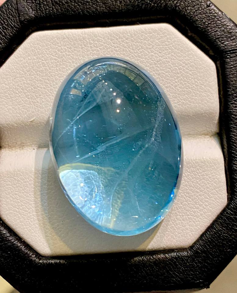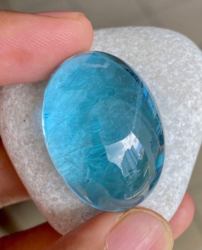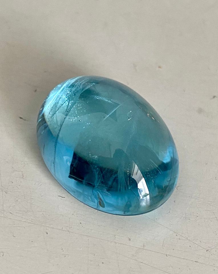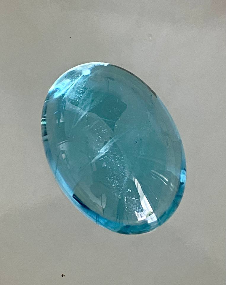 บลูโทแพซทรงรีธรรมชาติ รับรองโดย GIA ขนาด 10x13 มม. น้ำหนัก 4.00 กะรัต เจียระไนแบบ Excellent สำหรับทำเครื่องประดับ