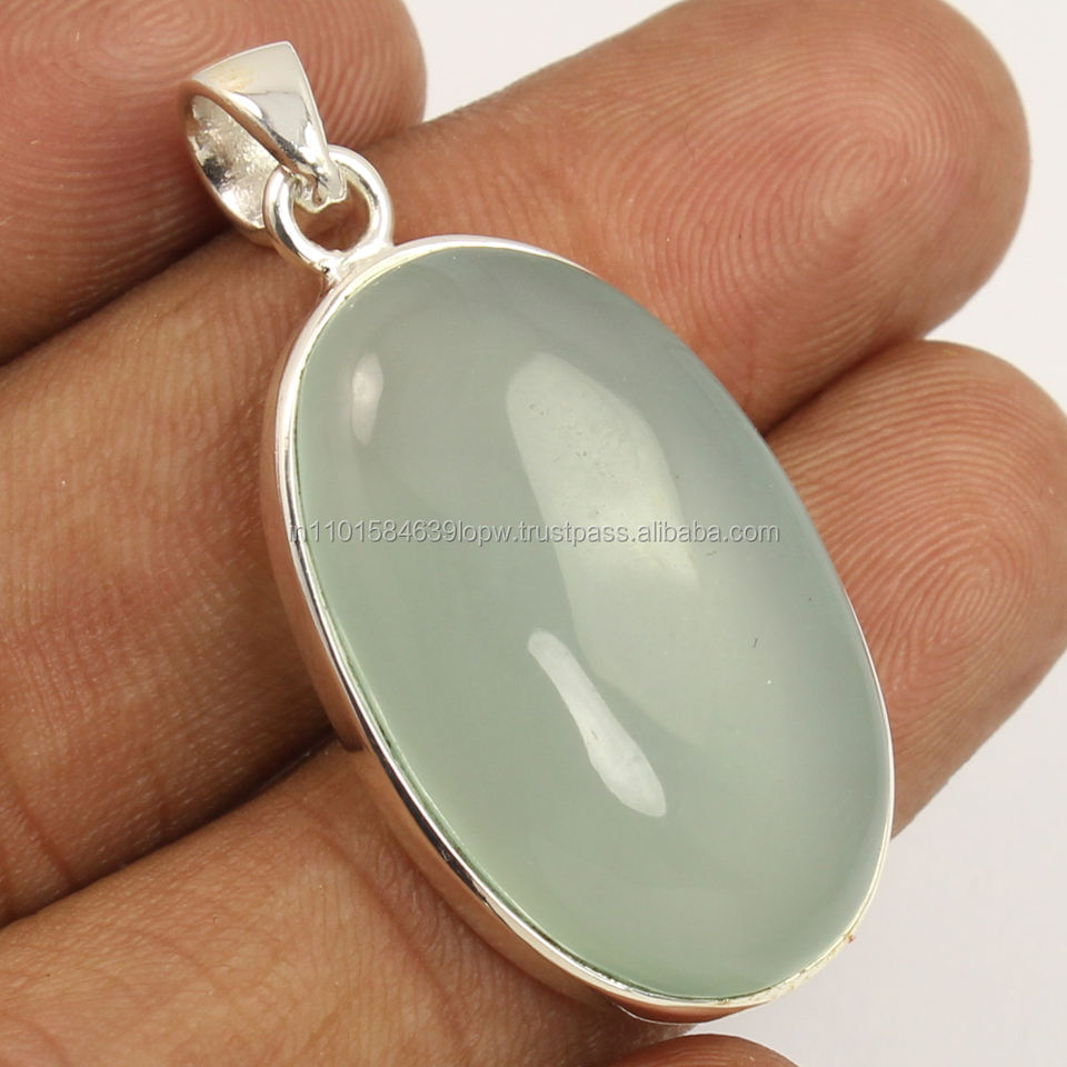 เครื่องประดับเงินสเตอร์ลิง925แท้รูปไข่ทำด้วยมือตามธรรมชาติพลอยคาลซิโดนีจี้น่ารักขายส่ง
