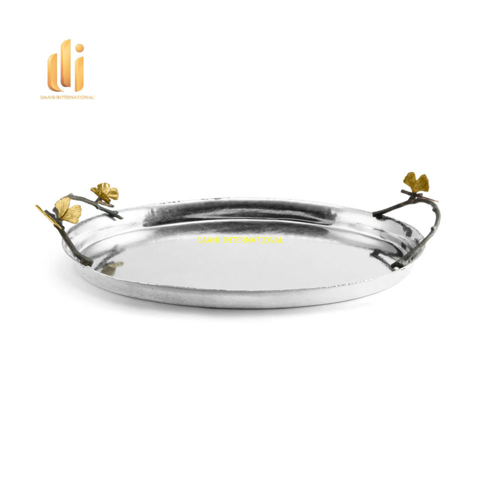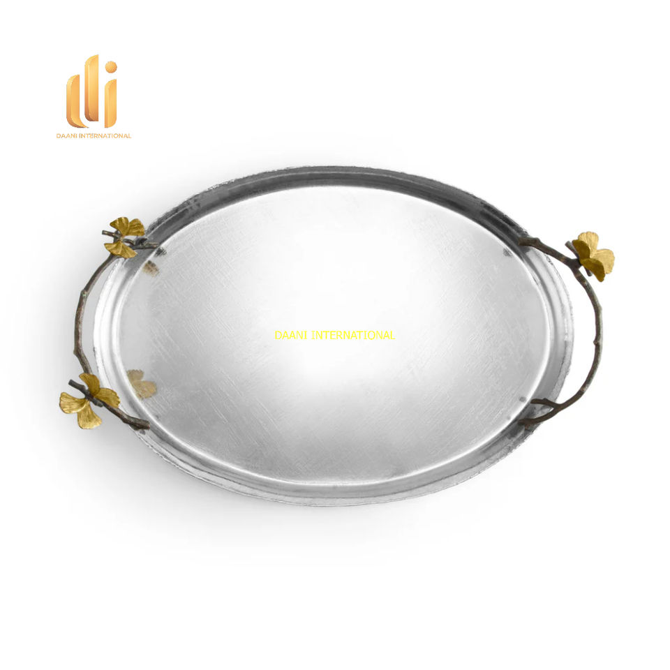 ถาดเสิร์ฟอาหารสีเงินรูปไข่พร้อมด้ามจับผีเสื้อตกแต่งหรูหราสำหรับบ้านโรงแรมร้านอาหารงานแต่งงาน