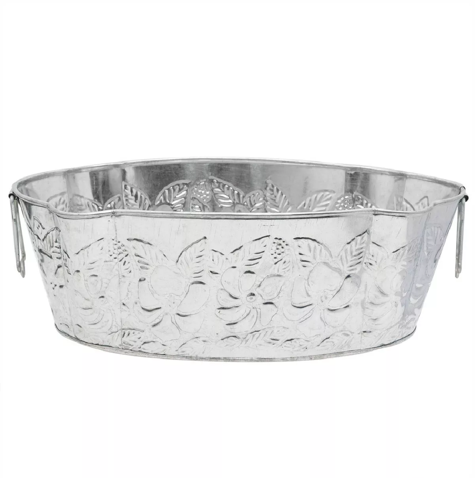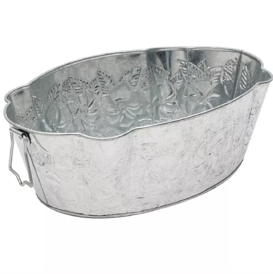 Oval Steel Tub Silver Ice Bucket and Decorative Garden Planter for Flower Pots & Planters