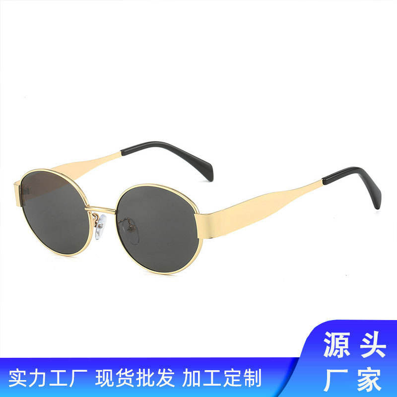 แว่นกันแดดทรงรีผู้หญิงกรอบโลหะสีทอง UV400 ประเภทการป้องกัน 3 ที่บังแดด เลนส์ Ac สไตล์เรโทร RG2180