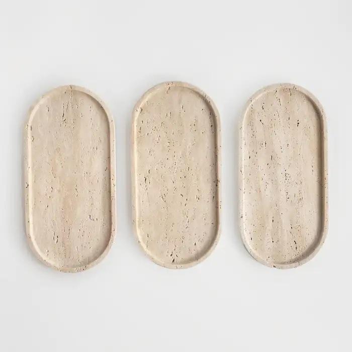 ถาดหินอ่อนทรงรีตกแต่งผิวเรียบเนียนเป็นธรรมชาติสำหรับการตกแต่งบ้านสไตล์โมเดิร์นและเป็นจุดเด่นบนเคาน์เตอร์อย่างมีระดับ