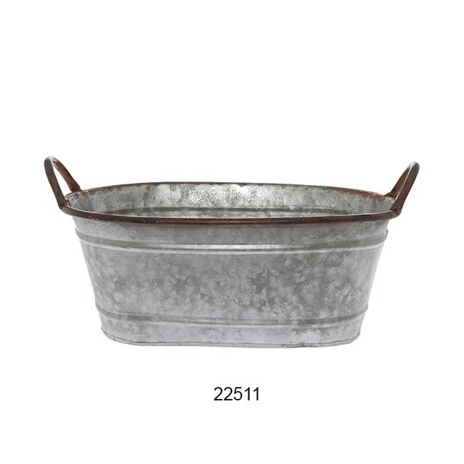 กระถางปลูกต้นไม้ทรงรีแบบอ่างล้างจาน ผิวเคลือบกัลวาไนซ์แบบเก่า