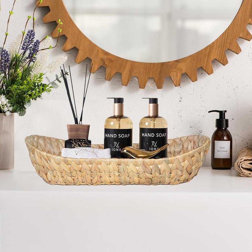 ตะกร้าเก็บของสานจากผักตบชวาทรงรี ตะกร้าเก็บของทำมือ ขายส่ง เป็นมิตรกับสิ่งแวดล้อม ผลิตในเวียดนาม