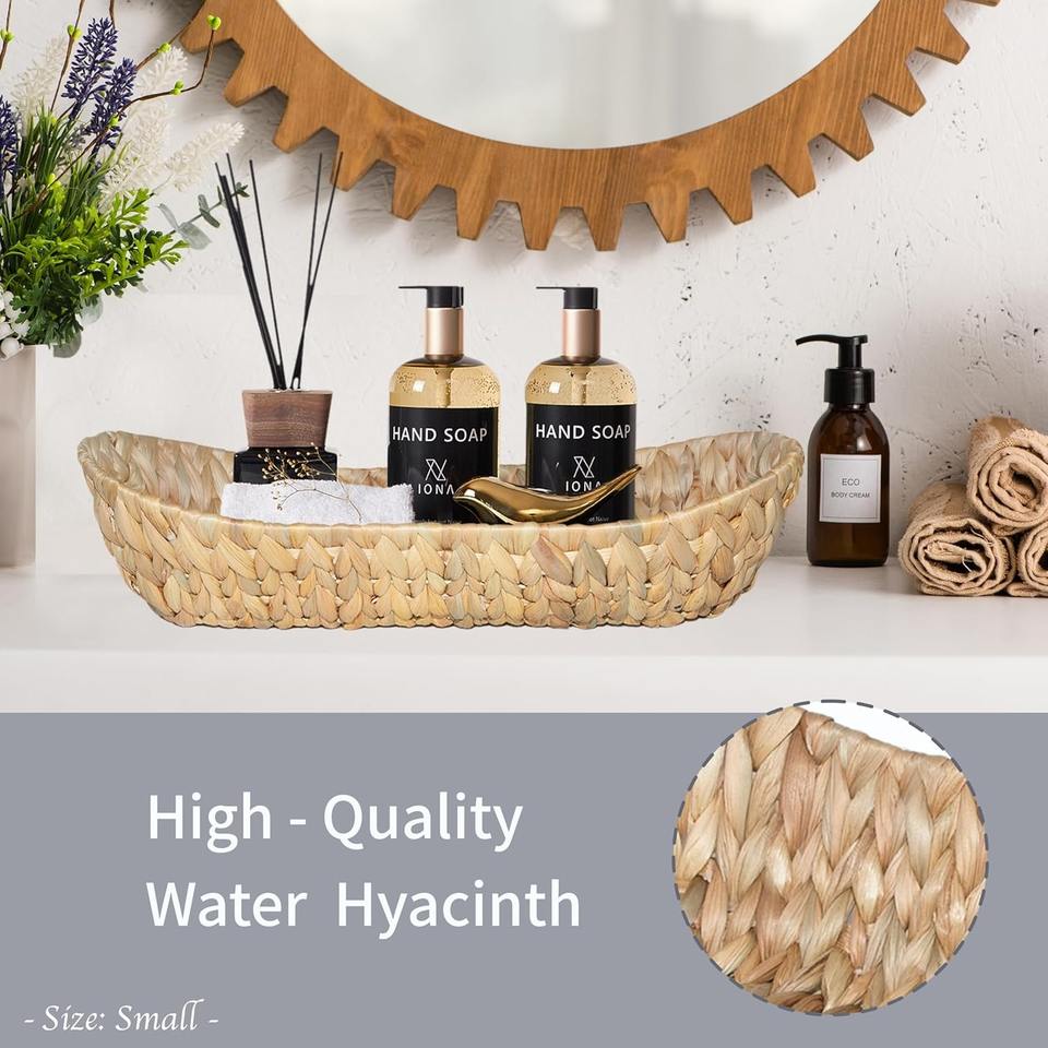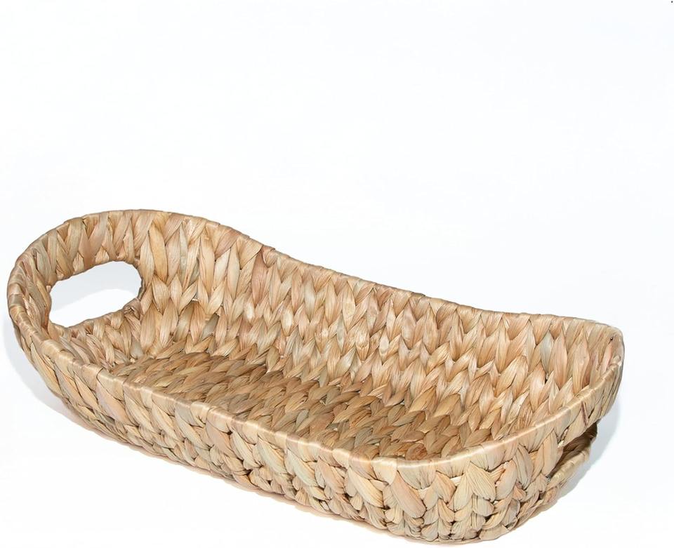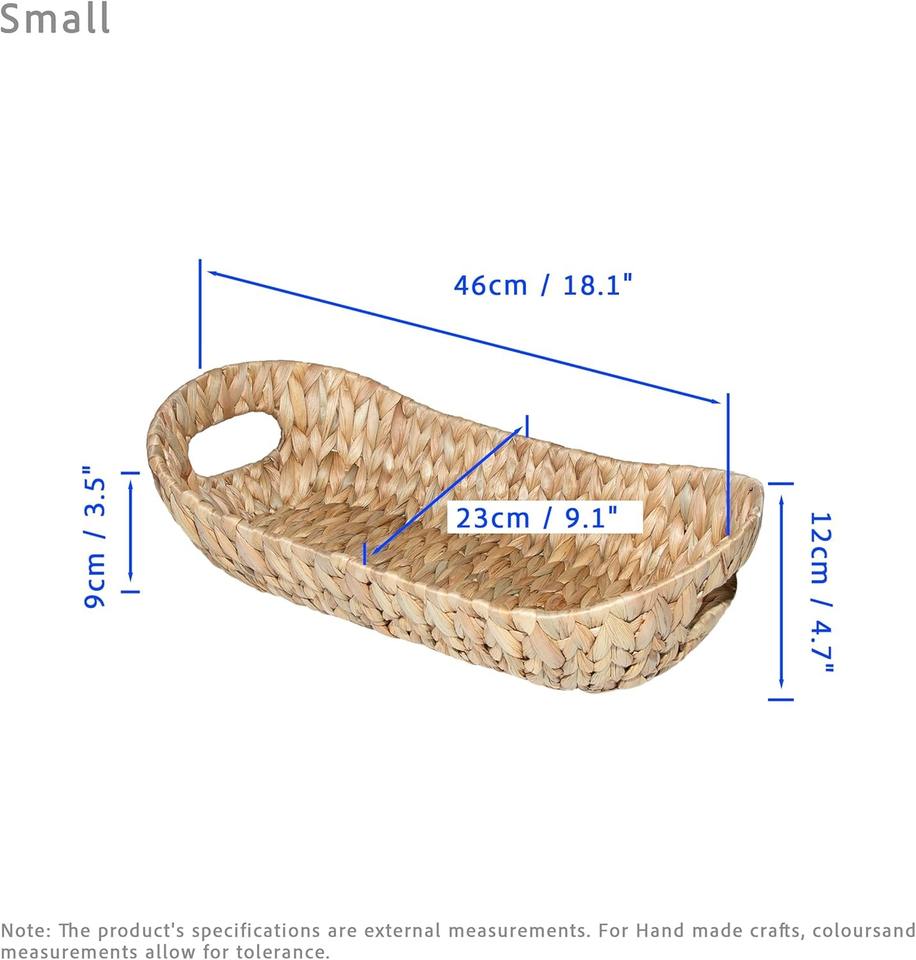 ตะกร้าหวายผักตบชวาทรงรี:ขนาด: ยาว 18 x กว้าง 9 x สูง 3.5 นิ้ว