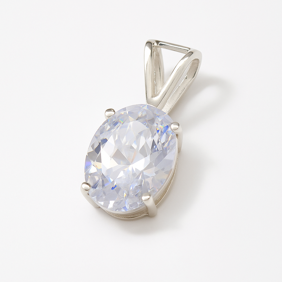 จี้รูปไข่ประดับเพทาย ชุบโรเดียม เงินสเตอร์ลิง ดีไซน์เรียบง่าย ลายตัวเลข เครื่องประดับสำหรับผู้หญิง Rhaya Jewels-Anniversary ขนาด 14 มม.