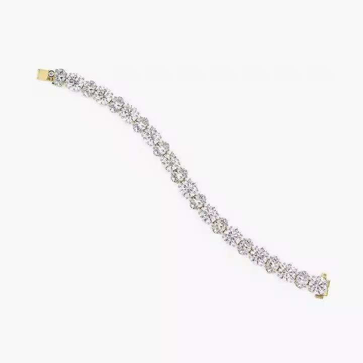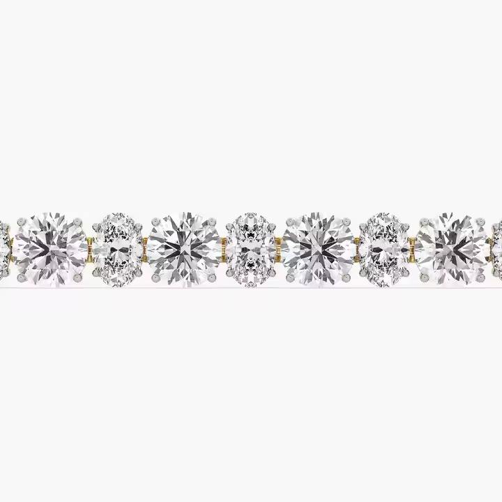 กำไลข้อมือเพชรทรงรีและทรงกลมที่เพาะเลี้ยงในห้องปฏิบัติการ ประดับบนทองคำ 14K สีเหลือง