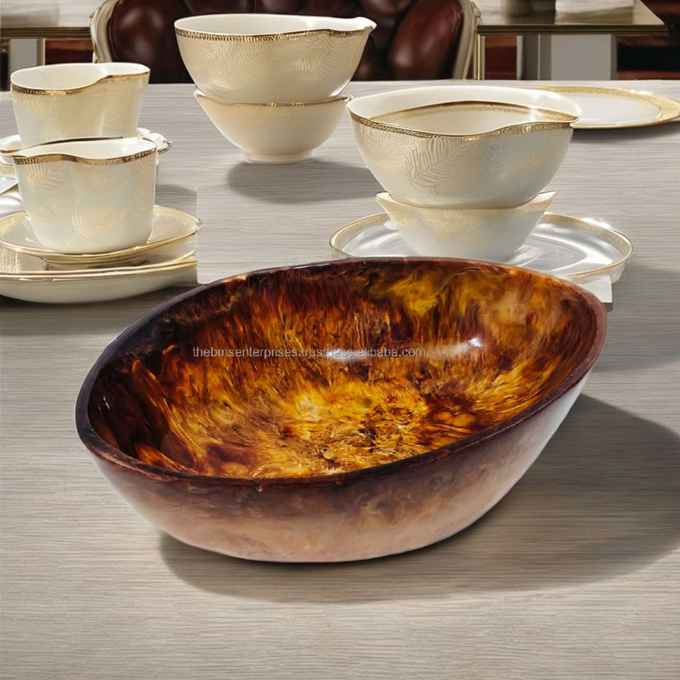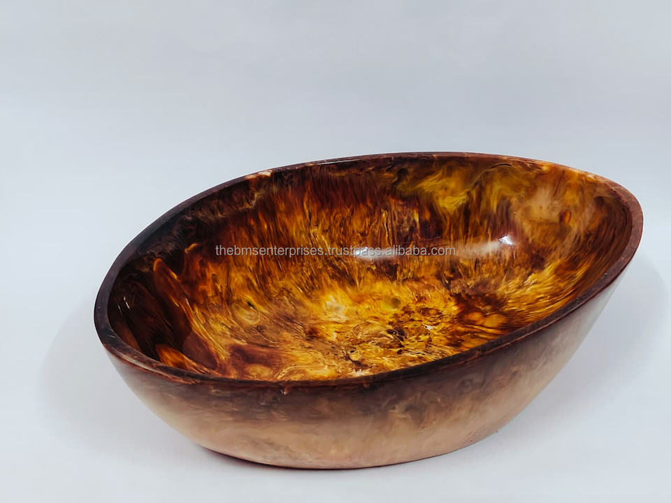 ชามใส่แป้งสีอำพันทรงรีชามแป้งเรซินทำจากไม้ทำด้วยมือฝีมือ