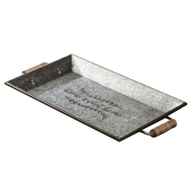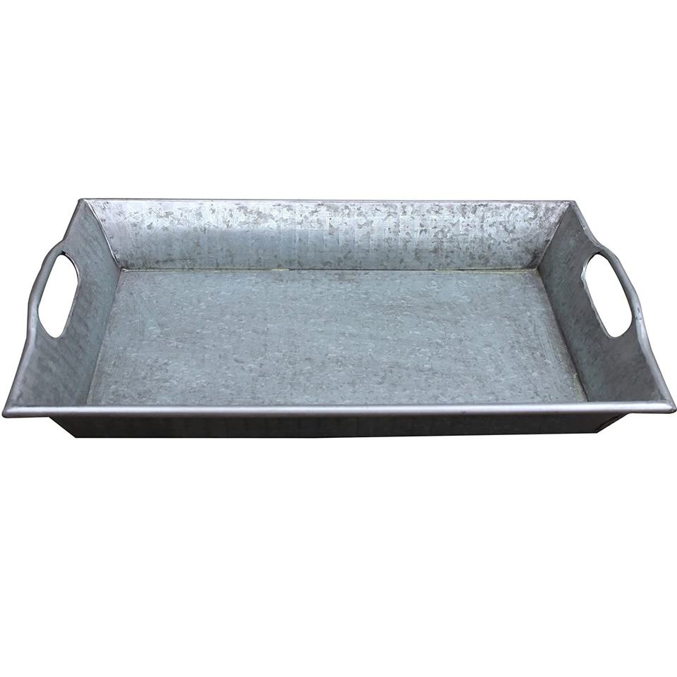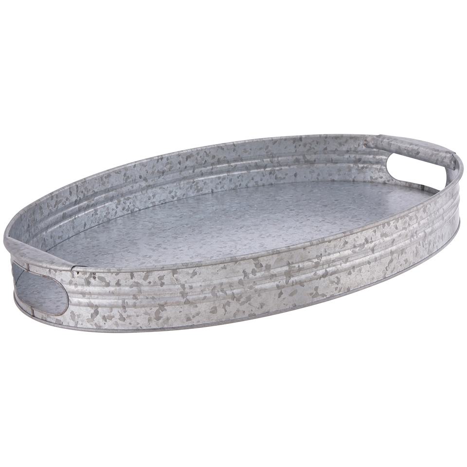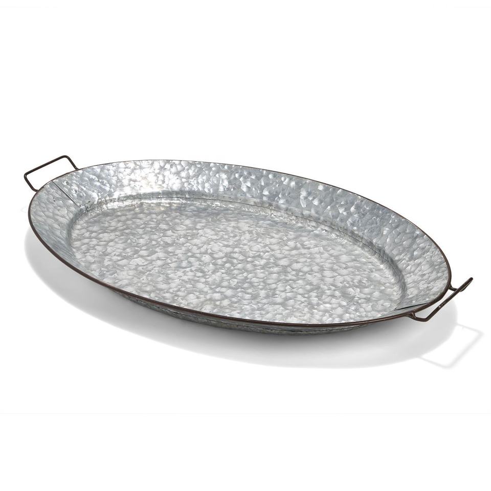 ถาดเสิร์ฟชุบสังกะสีรูปวงรีทำด้วยมือพร้อมที่จับลวดโลหะเป็นมิตรกับสิ่งแวดล้อมสำหรับตกแต่งบ้านและห้องครัว