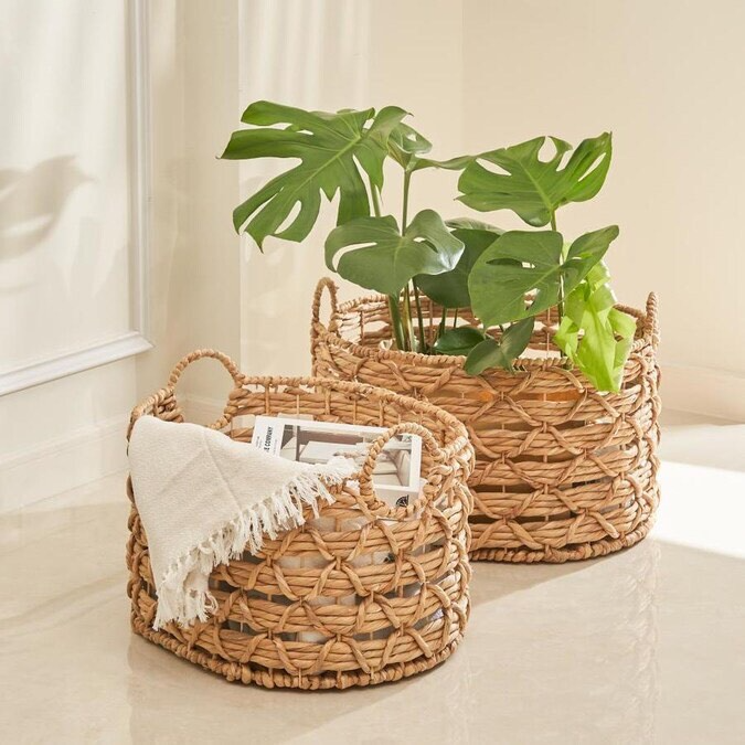 ตะกร้าหวายผักตบชวาทรงรี ถักทอเป็นรูปตัว X บิดเกลียว