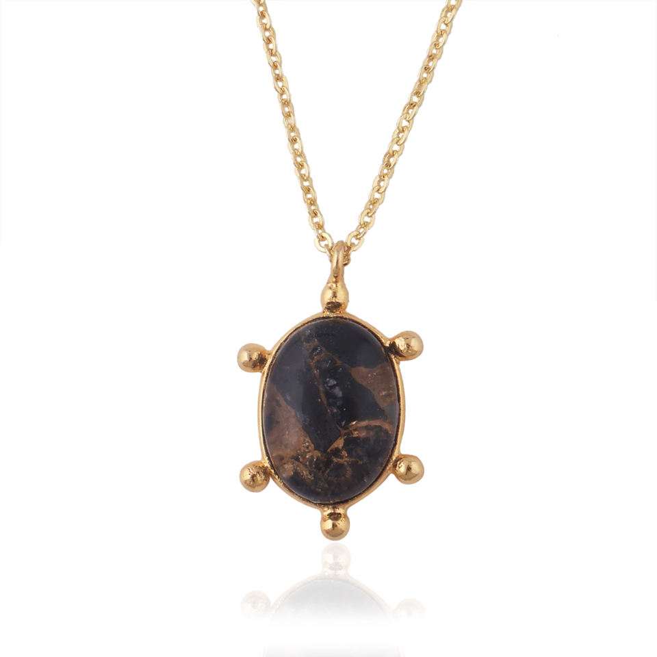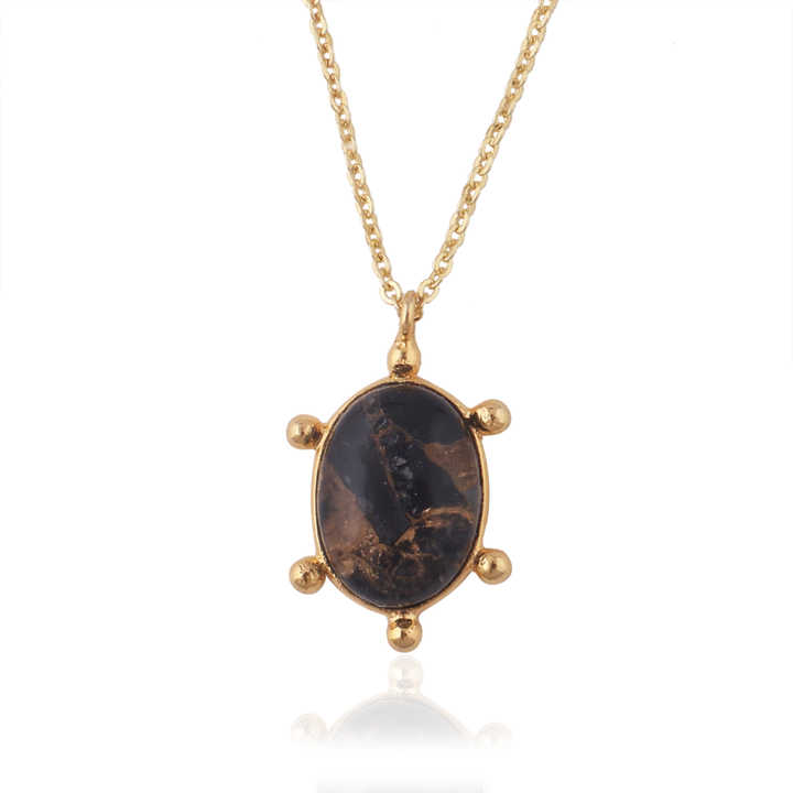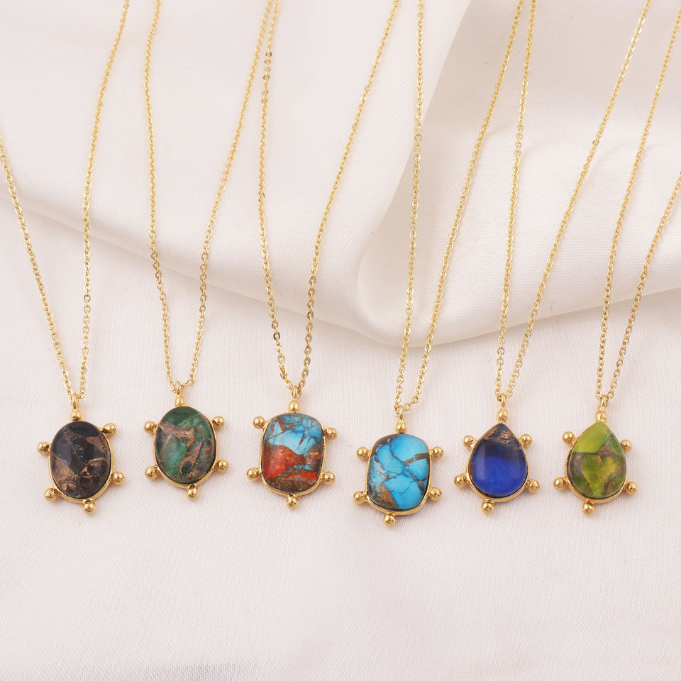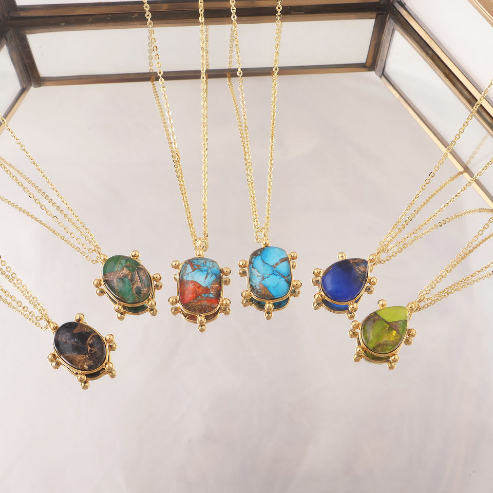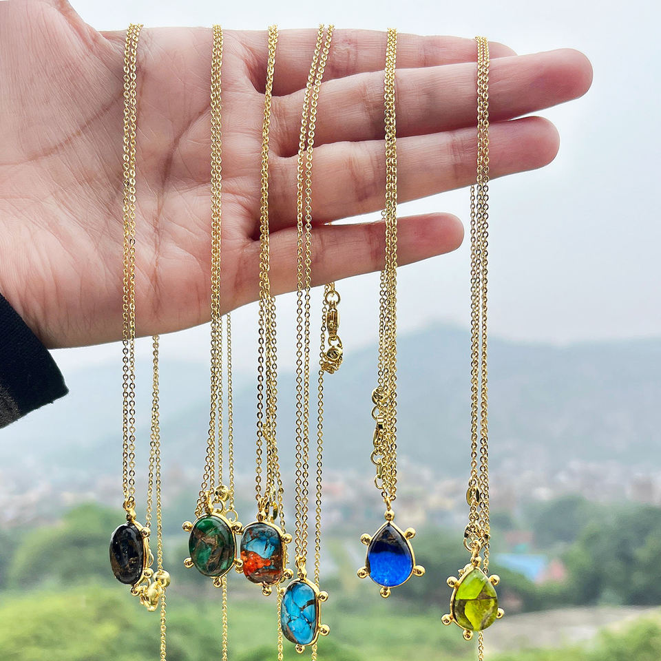 จี้หินรูปไข่แบบดับเบิ้ลท์ โมฮาวี แบล็คคอปเปอร์ เทอร์ควอยซ์ สร้อยคอทองเหลืองชุบทอง 18k สร้อยคอจี้พลอยสั่งทำพิเศษ