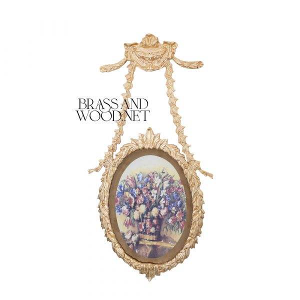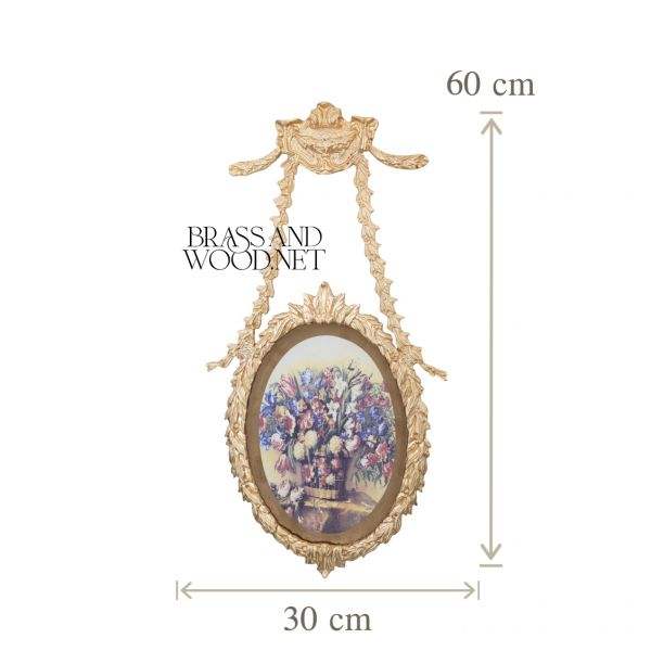 กรอบติดผนังรูปไข่ทำจากทองเหลืองสีทองพร้อมริบบิ้นแขวนหรูหราดีไซน์คลาสสิกตกแต่งด้วยลวดลายดอกไม้สำหรับบ้านสุดหรู