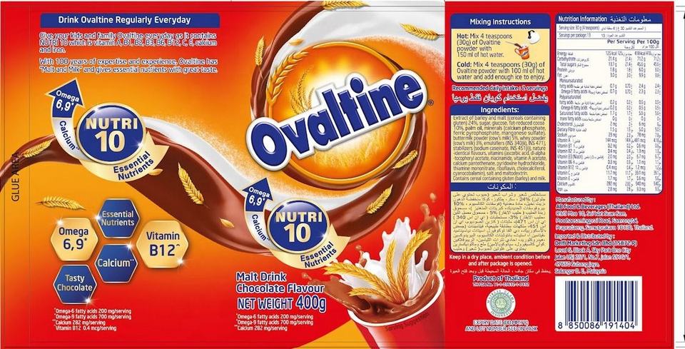 โอวัลติน นมช็อกโกแลตมอลต์ 400 กรัม ขวดแก้ว อายุการเก็บรักษา 18 เดือน ขายส่ง