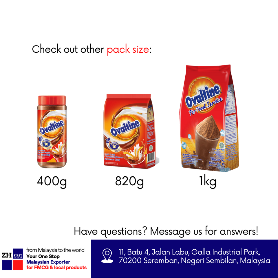 Ovaltine ผงโกโก้มอลต์ช็อคโกแลต340กรัมของแท้สีแดงแพ็คใหญ่เครื่องดื่มฮาลาลภาชนะบรรจุแบบผสมจากมาเลเซีย