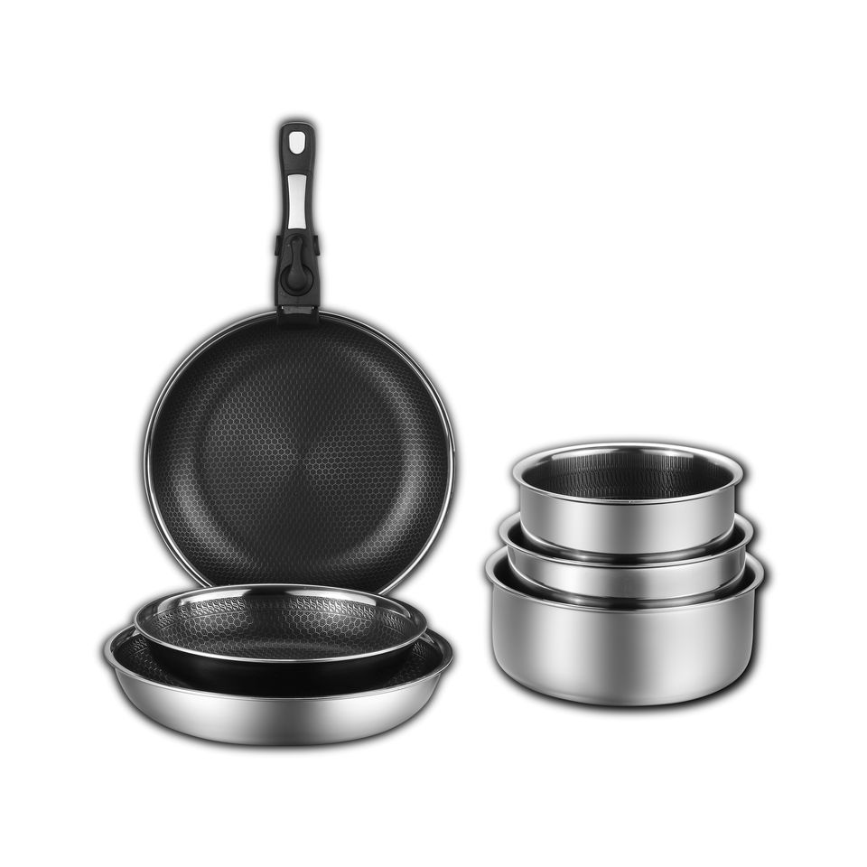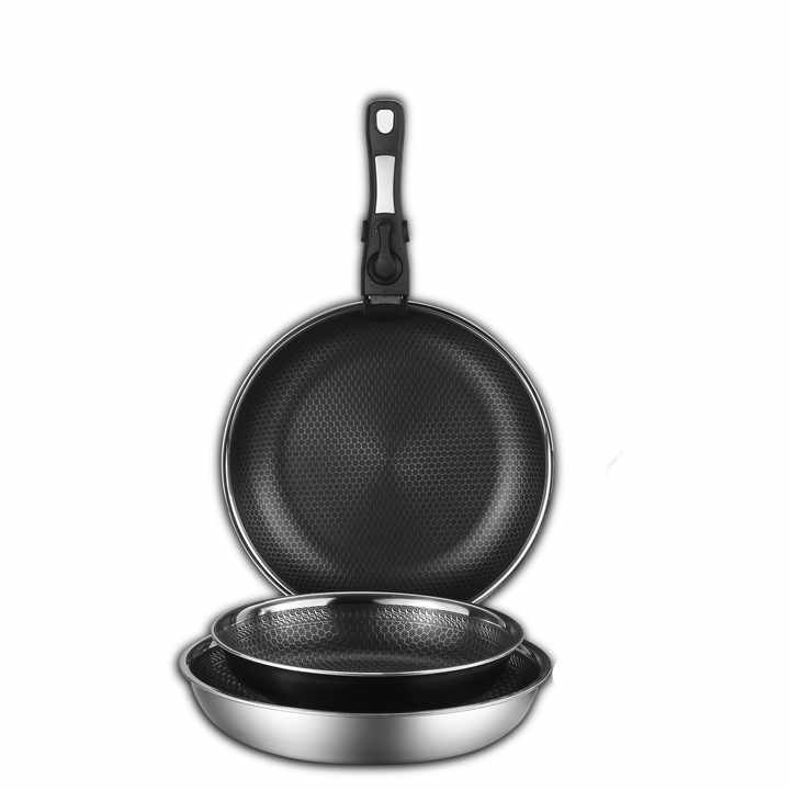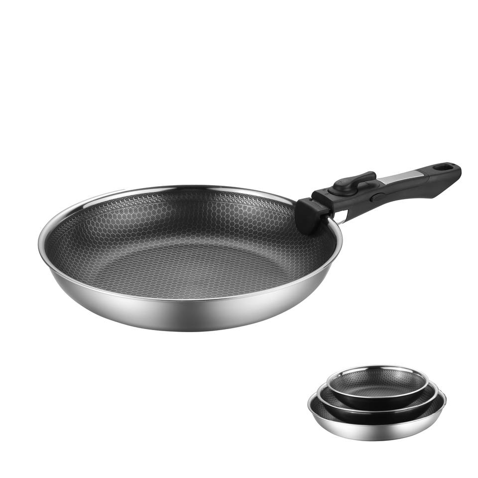 ชุดกระทะทอดสแตนเลส4ชิ้นด้ามถอดได้กระทะทำอาหารแบบไม่ติดกระทะ20/24/28ปลอดภัยสำหรับเตาอบ