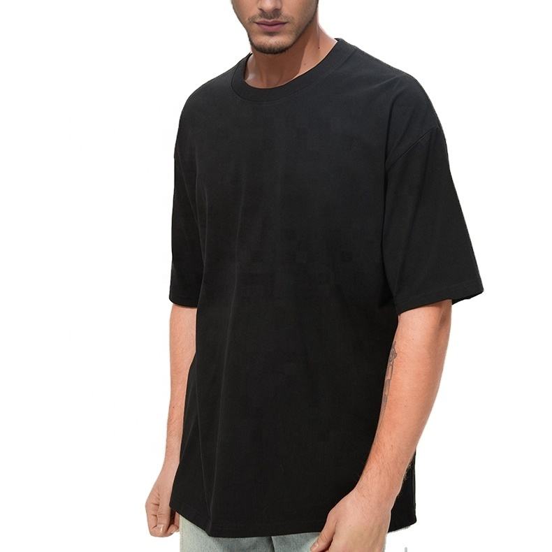 เสื้อยืดผ้าฝ้าย100% สำหรับผู้ชายขนาดใหญ่กว่าขนาด260gsm สีพื้นลดไหล่และเสื้อผ้าหดตัวเป็นศูนย์