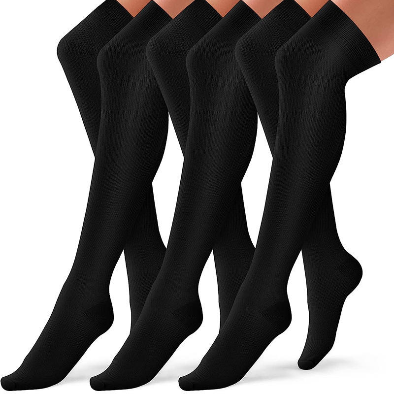 ถุงเท้ารัดกล้ามเนื้อเหนือเข่า สีดำ ไนลอน สีพื้น สำหรับผู้ชายและผู้หญิง ใส่เล่นกีฬาหรือใส่ลำลอง