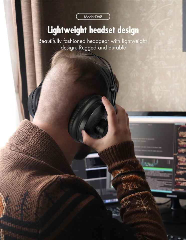 หูฟังแบบครอบหูหูฟังมอนิเตอร์สตูดิโอพร้อมสายสัญญาณเสียงที่ถอดออกได้