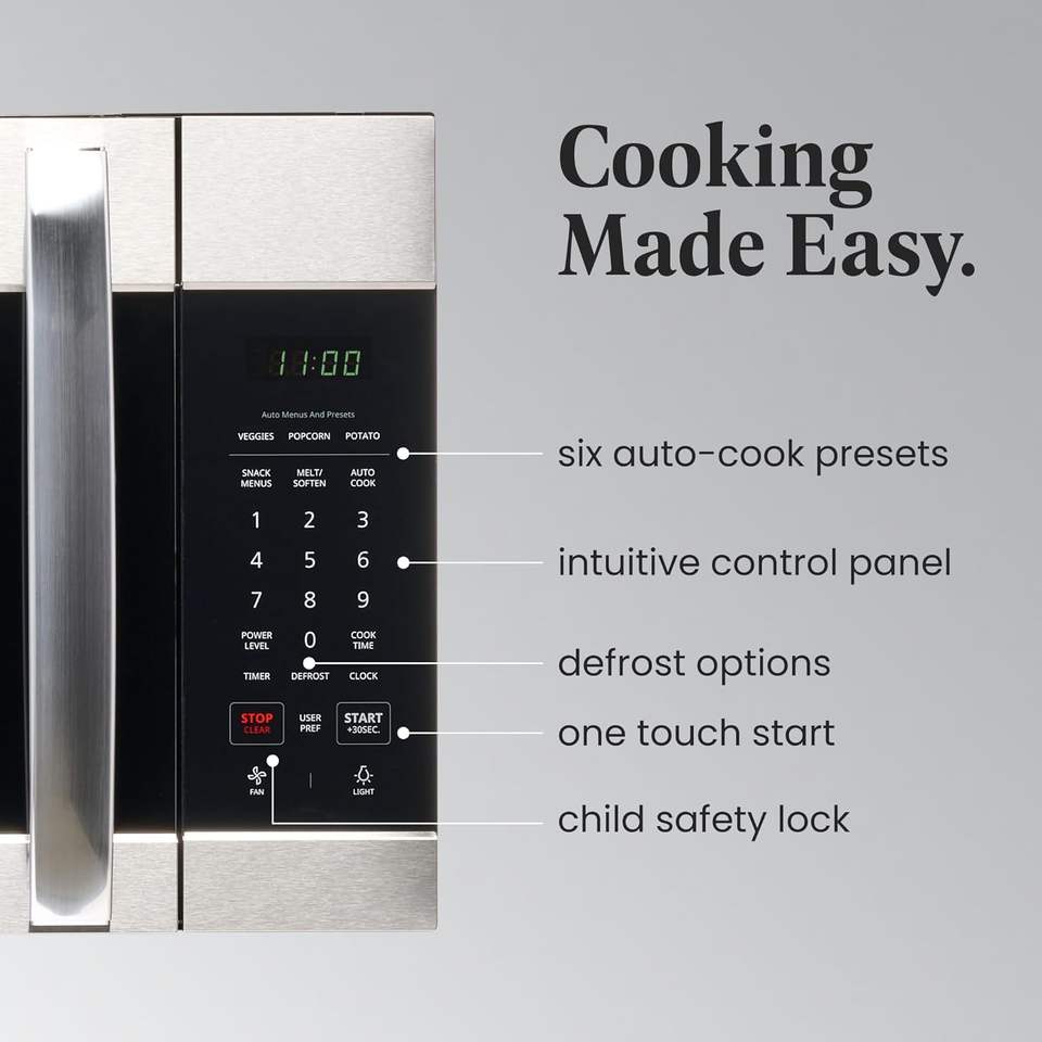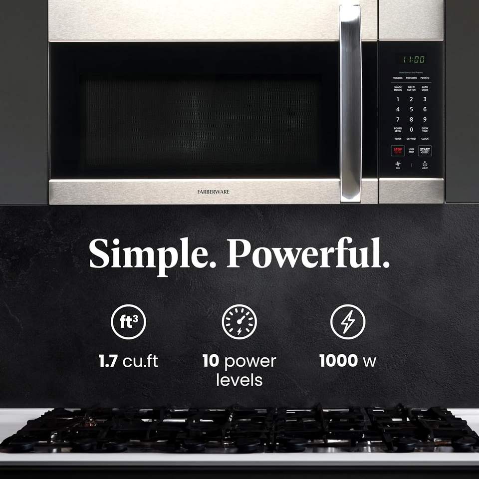 เตาอบไมโครเวฟแบบวางเหนือเตา, 1.7 คิว ฟุต 1000W - ระบบอุ่นอาหารอัตโนมัติ, การปรุงอาหารหลายขั้นตอน, ฟังก์ชั่นละลาย/นุ่มอาหาร, ระบบล็อคป้องกันเด็ก