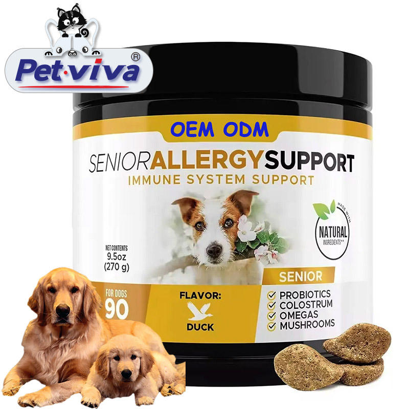 อาหารเสริมสุขภาพสัตว์เลี้ยงโดยรวมเคี้ยวนุ่มบรรเทาอาการแพ้อาหารสุนัขโอเมก้าน้ำมันปลาวิตามินซีโปรไบโอติก