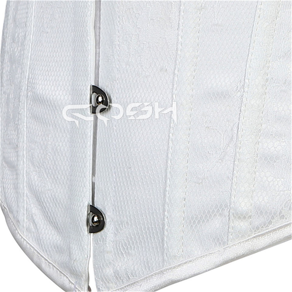 ชุดคอร์เซ็ทสำหรับเจ้าสาวสีขาวผ้าซาตินเสริมโครงเหล็กแบบโอเวอร์บัสท พร้อมผ้าลูกไม้ลายดอกไม้