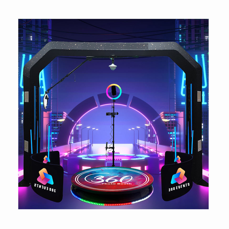 บูธภาพถ่าย360เหนือหัวพร้อมเครื่องพิมพ์ตู้ถ่ายภาพท้องฟ้าหมุนได้ช้า360องศาบูธถ่ายภาพสปินเนอร์ตู้โชว์สำหรับงานแต่งงาน