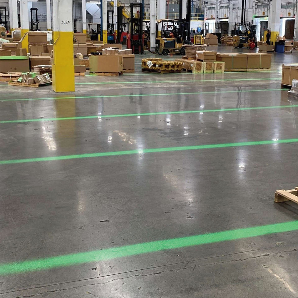 เครนเหนือศรีษะเลเซอร์เสมือนจริงสำหรับทางเดินข้างสำหรับคลังสินค้าความปลอดภัยลำแสงเส้นบางสีแดงสีเขียวสีน้ำเงิน