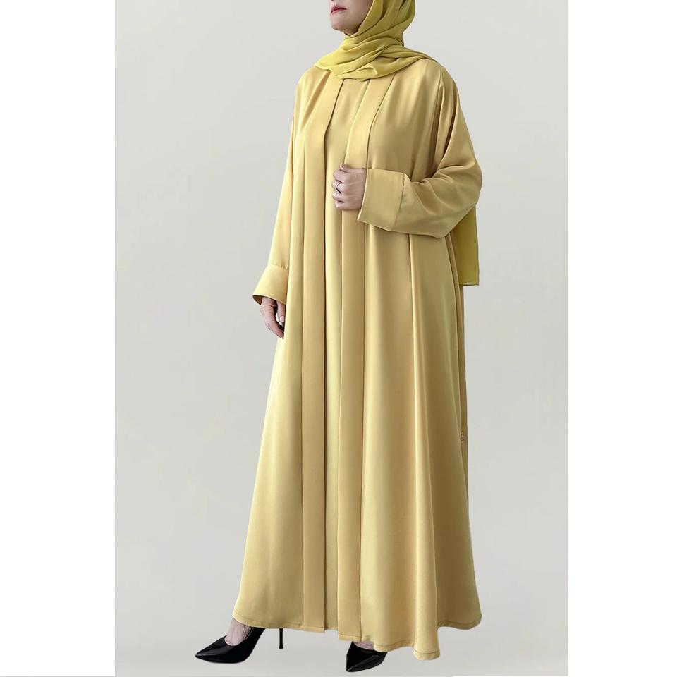 ชุดอาบายาสำหรับผู้หญิงชุดมุสลิมอาบายาผ้าไหมเงางามสง่างามชุดเดรสมุสลิมแบบเปิดโล่งสไตล์ตุรกี2023