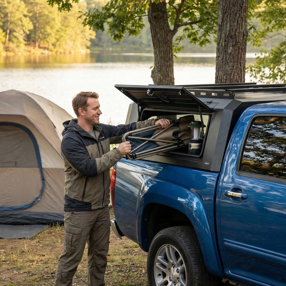 กล่องเก็บสัมภาระท้ายรถแบบกันน้ำพร้อมระบบล็อค ทำจากอลูมิเนียมอัลลอย สำหรับ Ford Ranger Raptor Next Gen 3.0L V6 EcoBoost พร้อมแร็คหลังคาและหลังคาคลุม