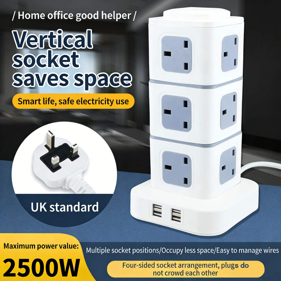 สวิตช์ป้องกันไฟเกินพิกัด ป้องกันไฟกระชาก เหมาะสำหรับปลั๊กแบบ UK รุ่น 2026 ซ็อกเก็ตแนวตั้งหลายด้านแบบใหม่ แยกอิสระพร้อมพอร์ต USB ใช้ได้ทั้งที่บ้านและที่ทำงาน