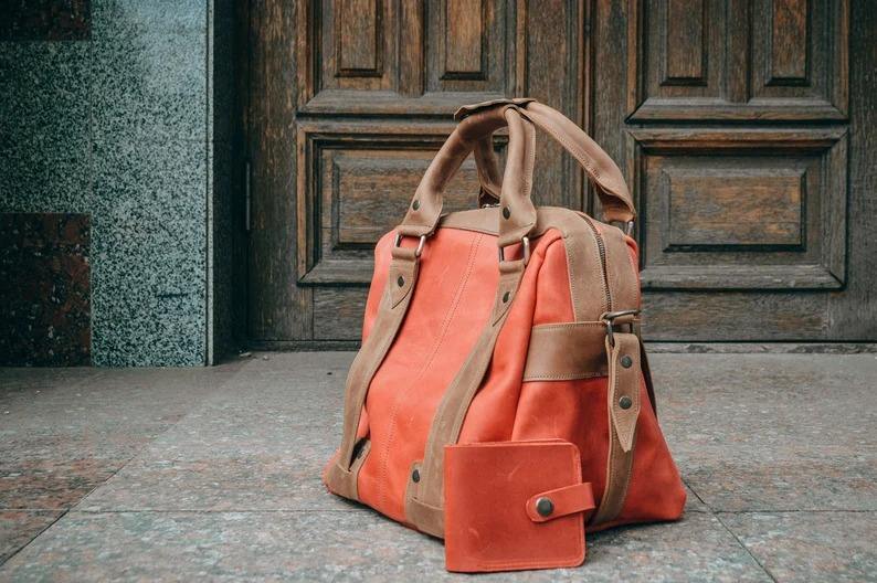 กระเป๋าเดินทางหนังแท้ Overnighter สไตล์เรโทร ขนาดใหญ่ จุของได้เยอะ พกพาสะดวก พร้อมซิปสำหรับเดินทางช่วงสุดสัปดาห์