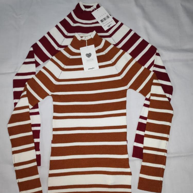 Overrun,Surplus Apparels Brand Labels Womens Ladies Long Sleeve Round Neck Soft Warm Striped Sweaters Knitwear Pullover Jumpers