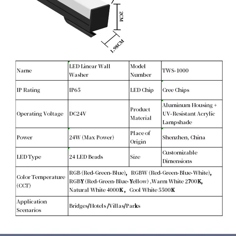 Overseasign TWS-1000เครื่องซักผ้าผนัง LED กลางแจ้ง, IP65 DC24V ความสว่างสูงกันน้ำ2700K/4100K/5000K Ra98ให้เลือกสี