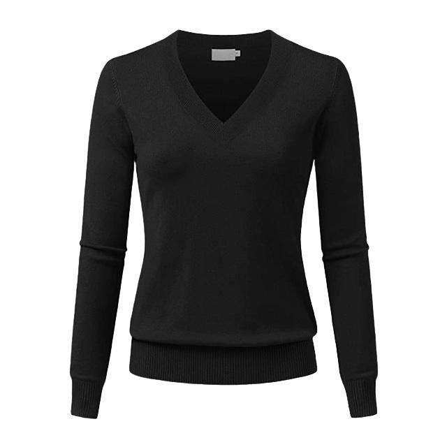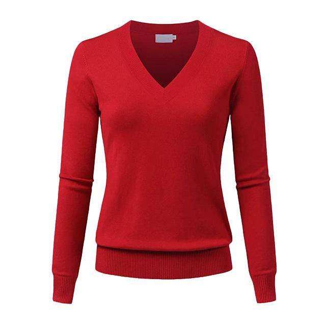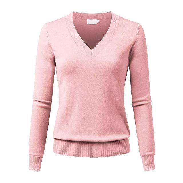 เสื้อสเวตเตอร์คอวีผ้าฝ้ายโอเวอร์ไซส์สำหรับฤดูใบไม้ร่วงและฤดูหนาว สไตล์ลำลอง ระบายอากาศได้ดี สำหรับผู้หญิง มีบริการสกรีนโลโก้ สีพื้น แขนปกติ