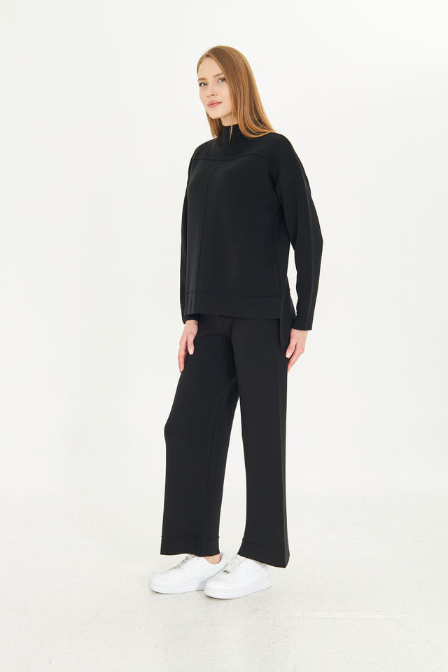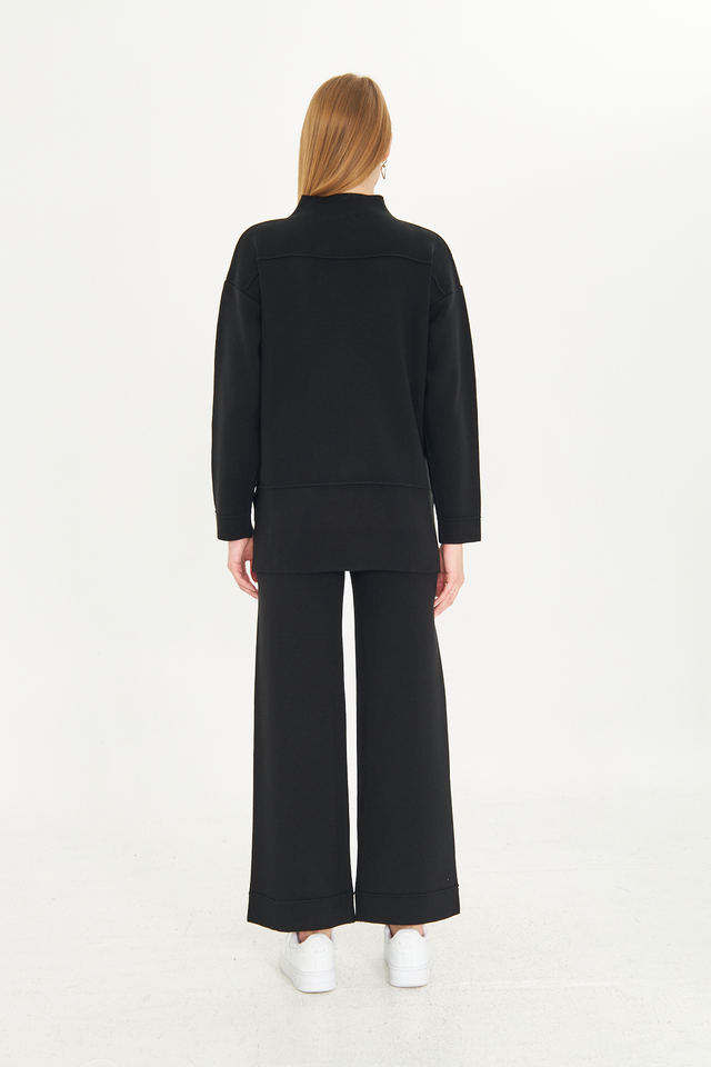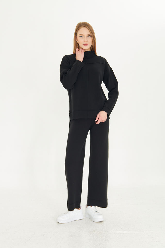 ชุดเสื้อสเวตเตอร์และกางเกง2ชิ้นสำหรับผู้หญิงชุดเสื้อถักแขนยาวเอวยางยืดชุดเสื้อถักขากว้างมีสไตล์
